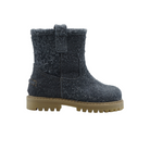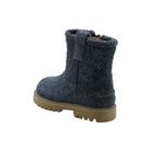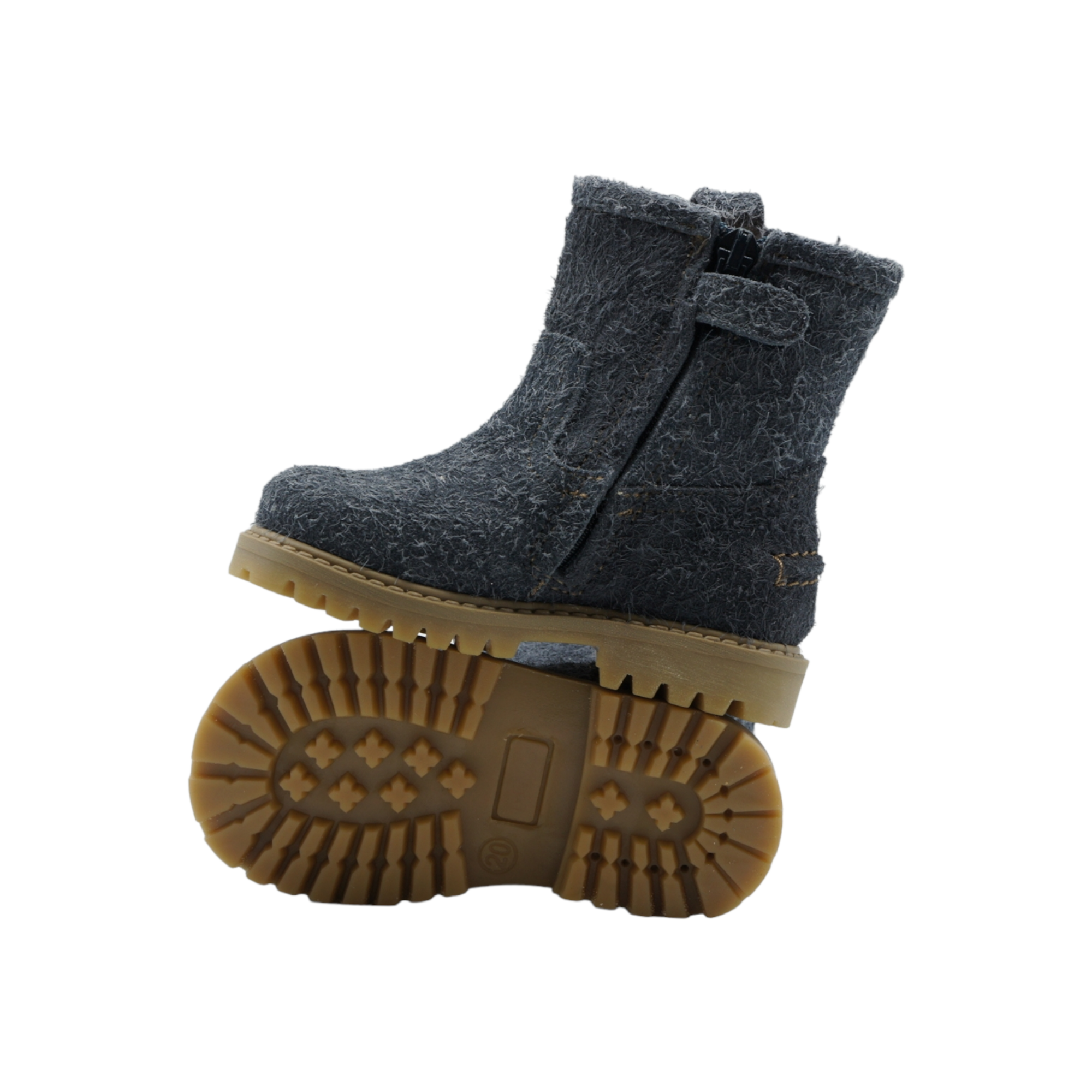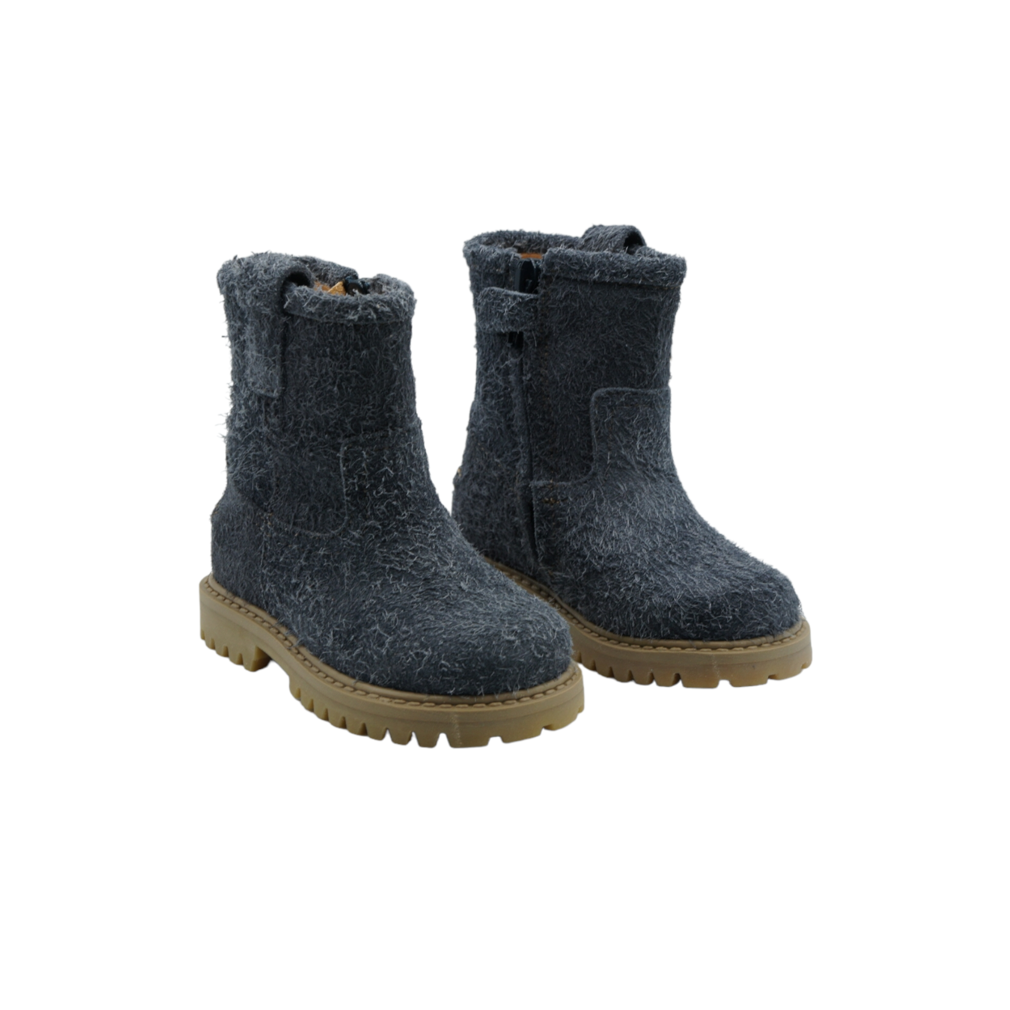 Long-hair velour ankle boots, round toe, side zipper, calfskin lining, removable calfskin insole, rock sole made of rubber.