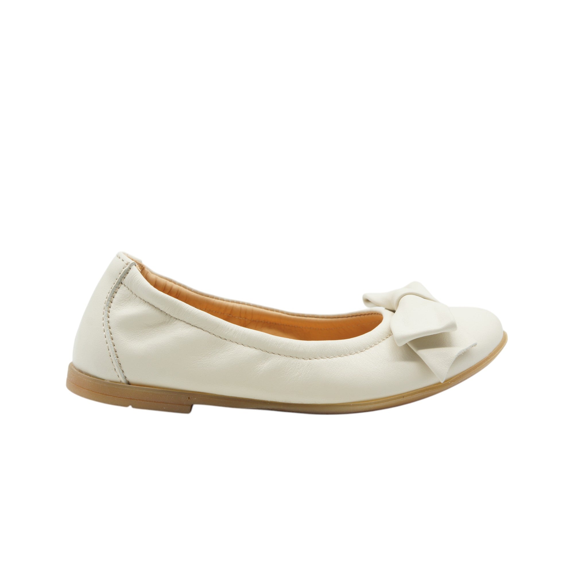 Crafted from premium soft leather, this white ballet flat embodies effortless elegance and versatility. Featuring a delicate bow detail on the toe, it exudes timeless femininity. The elasticated heel ensures a snug and comfortable fit, while the cushioned insole and flexible rubber sole provide all-day support. Perfect for any occasion, from casual outings to formal gatherings, this ballet flat is a must-have for refined, everyday style.