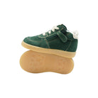 Sneakers alte in velour, dettagli in pelle di vitello, morbidissime, perfette per i primi passi, lacci e cerniera laterale, punta tonda, fodera in pelle di vitello, soletta interna estraibile in vitello, suola in gomma.