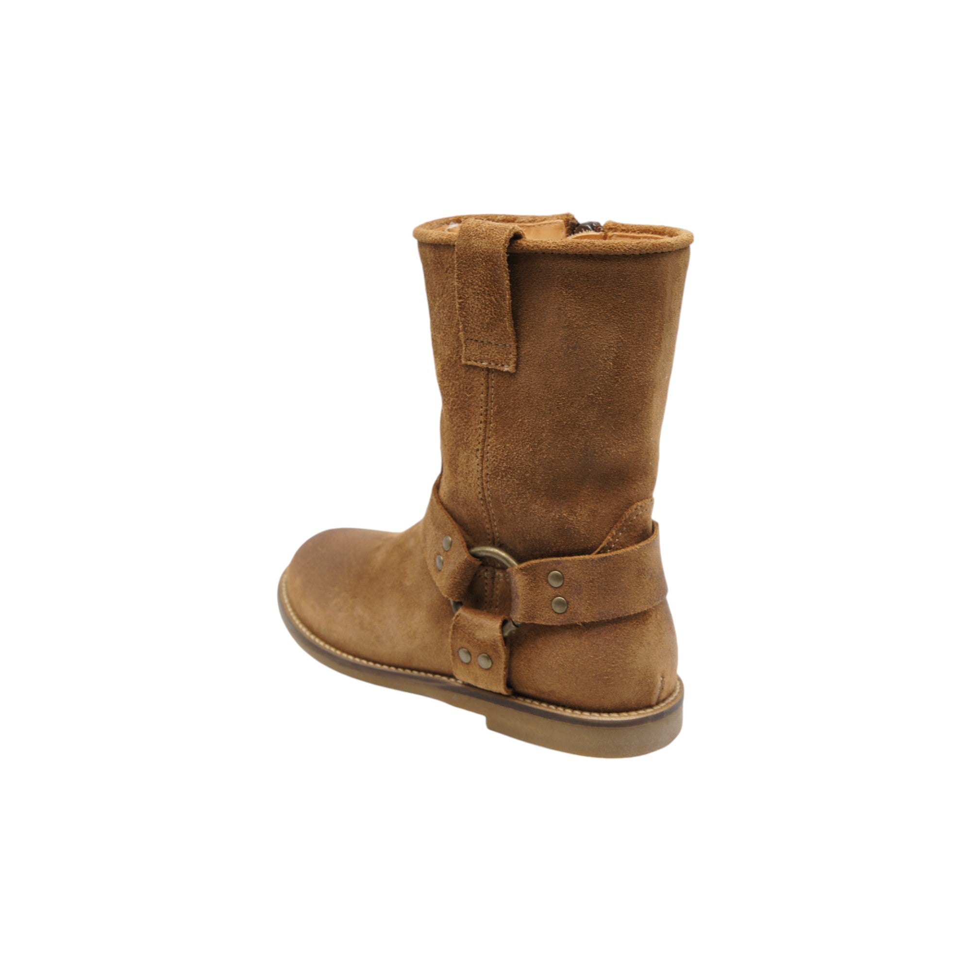 Suede ankle boots with decorative ring, elegant and for everyday use, side zipper, calf leather lining, rubber sole.